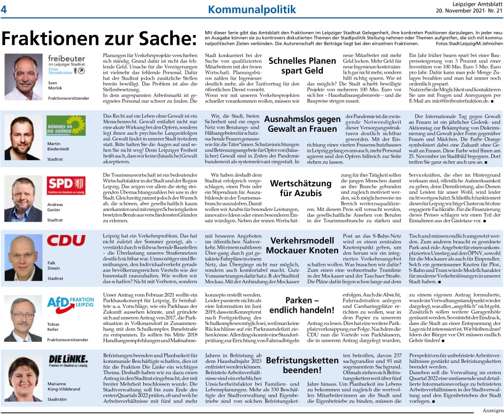 Herr Tobias Keller: Beitrag im Leipziger Amtsblatt vom 20.November 2021