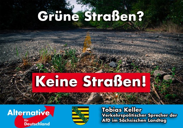 Die Grünen haben angekündigt, den Verkehrswegeplan nach neuen Kriterien zu gestalten. So sollen alle neuen Projekte nach ihrer Klimafreundlichkeit gestaffelt werden. Dies bedeutet, dass jegliche Maßnahmen bezüglich Bau und Sanierung von Straßen als zu klimaunfreundlich gelten werden und deswegen nicht in Angriff genommen werden, was zu einem drastischen Verfall aller Straßen in Deutschland führen würde.