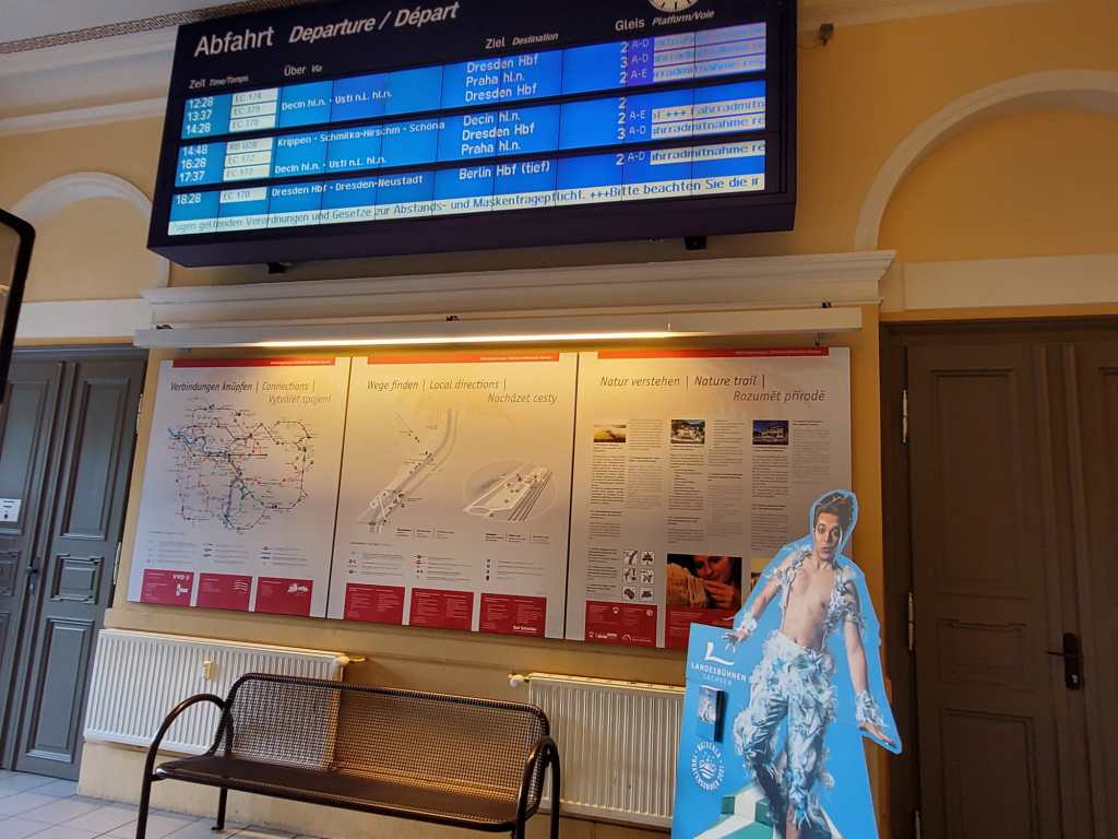 Der nächste Bahnhof, den ich mir ansehen möchte, ist der von Bad Schandau. Gelegen in der malerischen Idylle der Sächsischen Schweiz erstreckt sich der auf den ersten Blick moderne und gepflegte Bahnhof.
